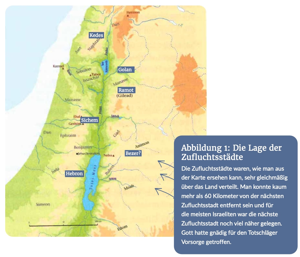 „Und der Herr redete zu Josua und sprach: Rede zu den Kindern Israel und sprich: Bestimmt euch die Zufluchtsstädte, von denen ich durch Mose zu euch geredet habe, dass dahin fliehe ein Totschläger, der jemanden aus Versehen, unabsichtlich, erschlagen hat; und sie seien euch zur Zuflucht vor dem Bluträcher“